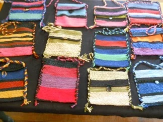 I am including 2 pictures this time—more potholders (top) and a picture of the finished book bags (below). Using the sequence for proportion of the stripes seems to make any color combination pleasing to the eye.