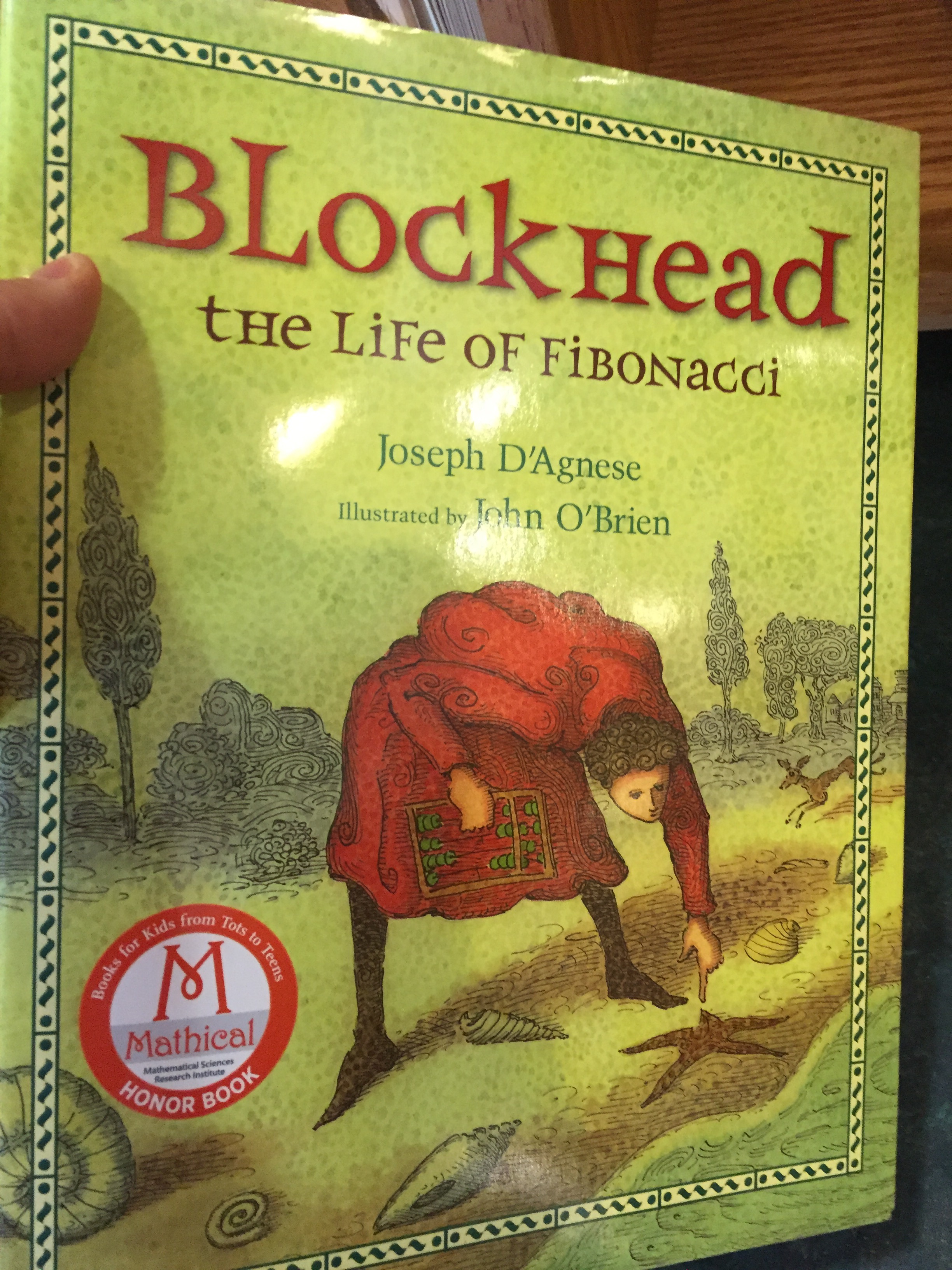 * My children's book, Blockhead: The Life of Fibonacci, is finally appearing in stores with a cover medallion announcing its selection as an Honor Book in the Mathical Prize for math-themed children's literature. Yay! Cool to have one of those award thingies on your book cover.