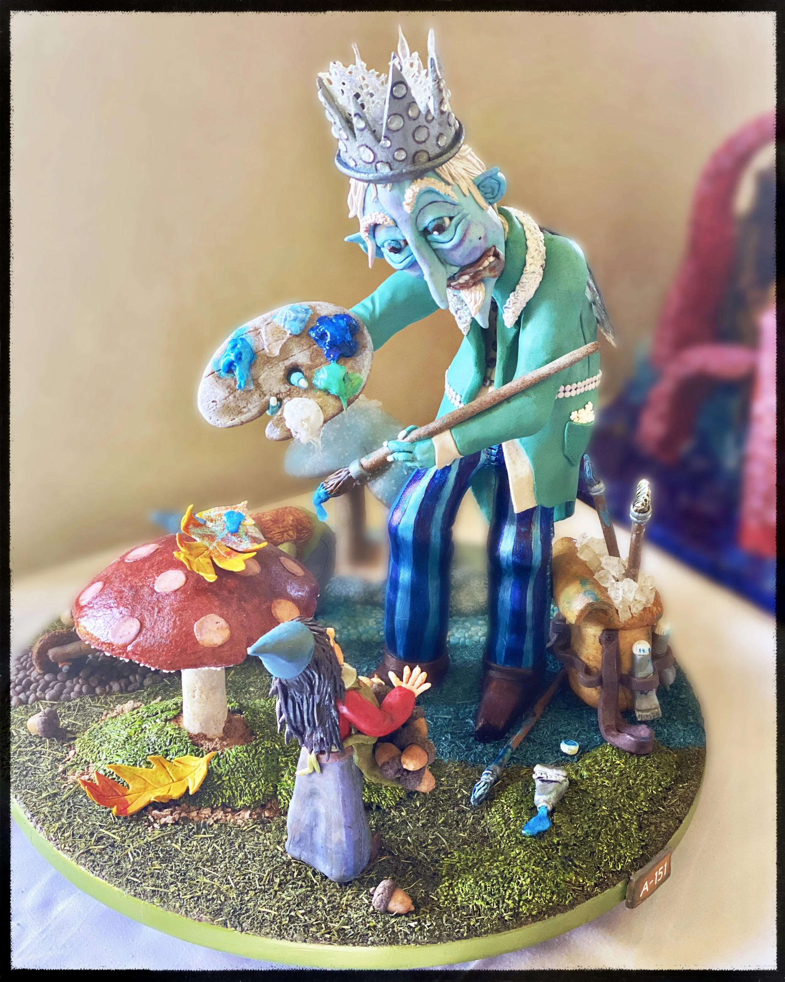The sculpture of Frost you see above actually inspired this story. It is a photo I took of one of the winners of the annual Gingerbread House competition held in my town at the nearby Omni Grove Park Inn. Talk about serendipity. I see Frost everywhere. That said, everything you see in that sculpture is edible.