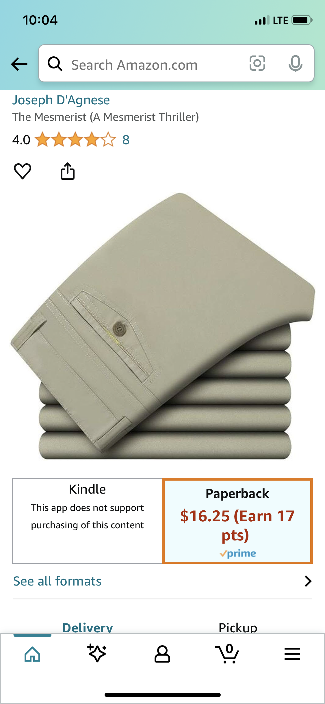 Well, it happened again. I went to check out one of my books on Amazon, only to discover that the image of the paperback cover had been replaced by a picture of men’s’ workout pants. This has happened to me a lot in my years of selling books on Amazon. It’s always pants, for some reason. And no one can ever tell me why it’s pants.