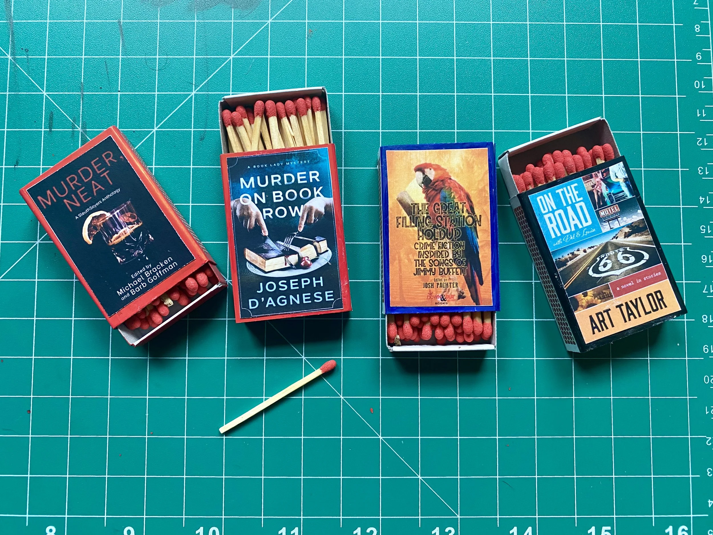 But upon close inspection, I saw that they were handmade and thus theoretically makeable by, well, me. Specifically, I wanted to be able to make matchbooks featuring my books, and not John Steinbeck’s or Margaret Mitchell’s or F. Scott Fitzgerald’s.