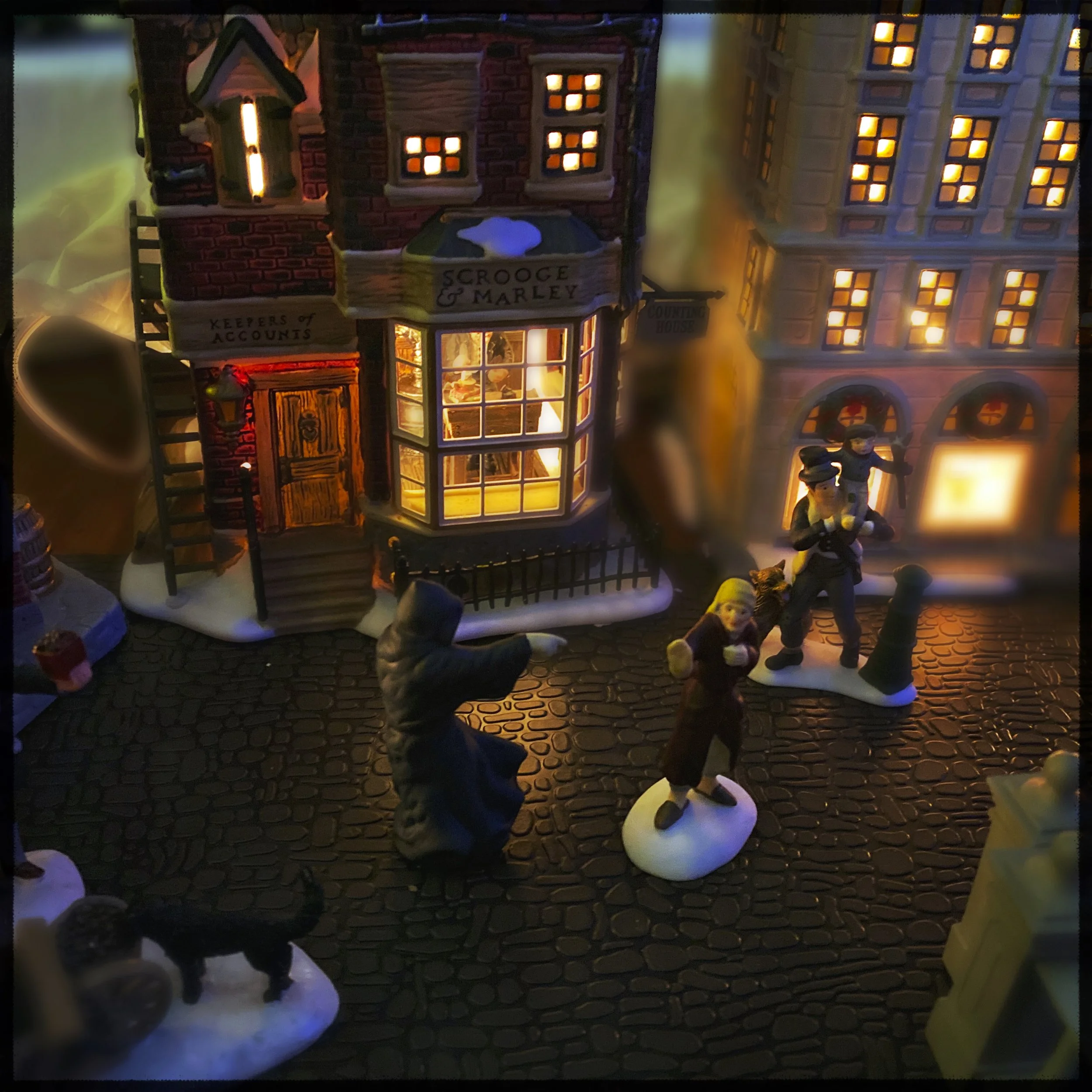 She nudged a minuscule Ghost of Christmas Future beside him. Checkmate.