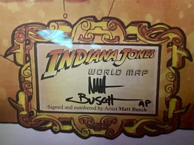 I connected with Mr. Busch once when I was still on social media, just to thank him profusely for the gift. At the time he gave Denise the map, the movie Indiana Jones and the Kingdom of the Crystal Skull had been out in the world for some time so the map reflected that addition to the canon. I see from Mr. Busch’s website that the original limited edition of 255 copies has sold out. There is a hint that more will be made in the future, and if so, I wonder if he intends to update it with the Dial of Destiny. That’s a question for another day.